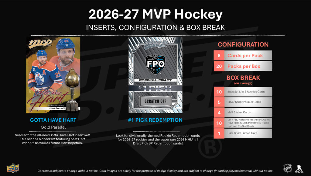 アッパーデック社NHL公式ホッケーカード「MVP」の2026-27年版!