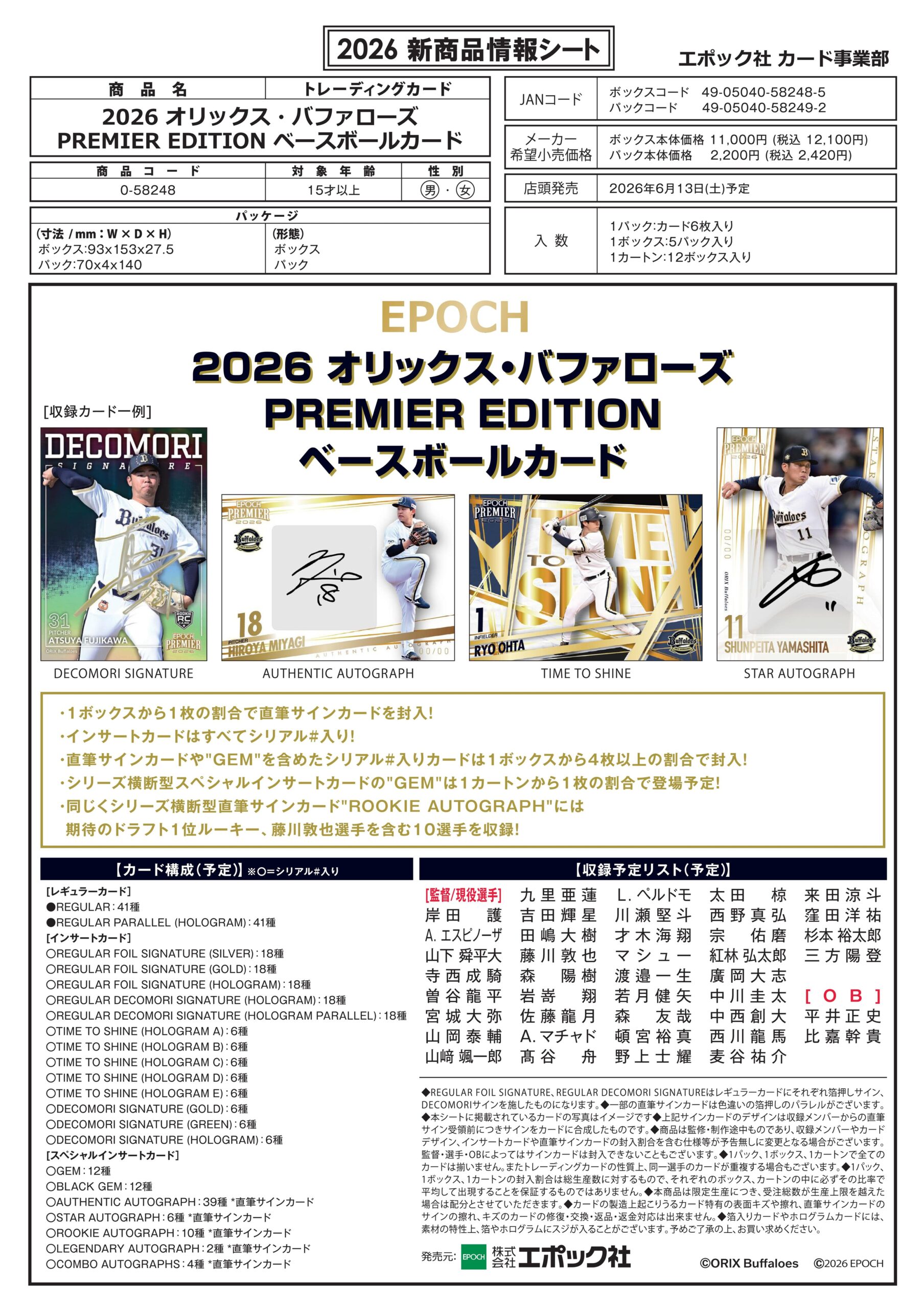 2026年6月13日 発売予定・1ボックスから1枚の割合で直筆サイン…