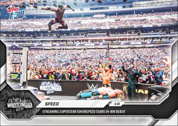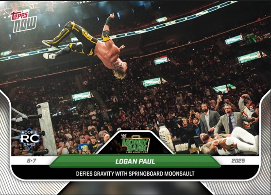 ローガン・ポールは同じユニット「ビジョン」のオースティン・セオリー、インフルエンサーのアイ・ショー・スピードと組み、ウーソズ(ジミー&ジェイ)&LAナイトと6人タッグ戦に臨み敗戦。しかも、試合後には制裁したスピードが裏切り、ナイトとウーソズの援護を受け鉄柱の上から、実況席に横たわったローガンにボディープレス。同じインフルエンサーでありながら、プロレスでは「素人」のスピードにテーブル葬されてしまった。さらに、この屈辱のシーンはTOPPS社のオンデマンドカード「TOPPS NOW」になってしまった。かつては自身が実況席へダイブしたムーンサルトが「TOPPS NOW」になったが、「テーブル葬」返しを食らった格好だ。