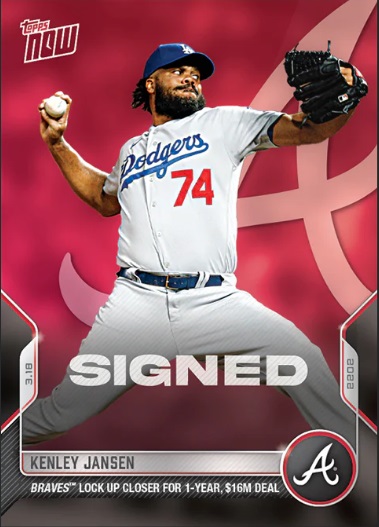 トレーディングカードも多く、TOPPS社のオンデマンドカード「TOPPS NOW」ではジャンセンの最新カードとして、この日の479セーブ目をマークした姿をカード化。これまでも、ワールドシリーズに出場した際のカードを含めたドジャースはもちろん、レッドソックス、エンゼルスの「TOPPS NOW」を発行してきた。ブレーブスだけは、契約時のカードだけでユニホーム姿ではない。