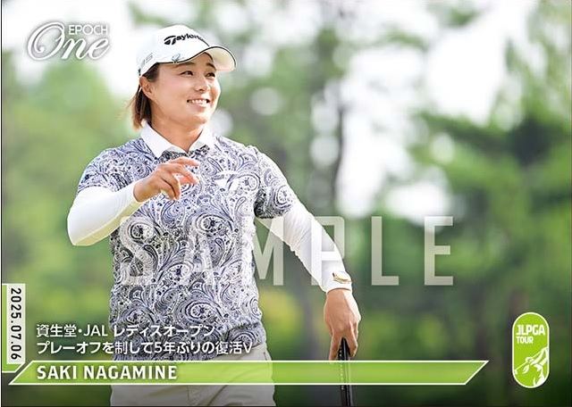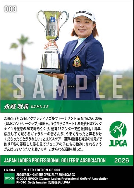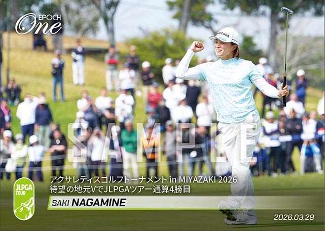 エポック社のオンデマンドカード「EPOCH-ONE」では女子プロゴルフカテゴリーを2021年からスタートしたため、今回の優勝で永峰にとっては、2枚目の限定カードの発注をスタートした。写真は自身初のガッツポーズになった。