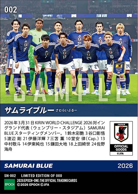 エポック社のオンデマンドカード「EPOCH-ONE」が、FIFAワールドカップ2026北中米3カ国大会を前に日本代表メンバーの限定トレーディングカードを発売した。