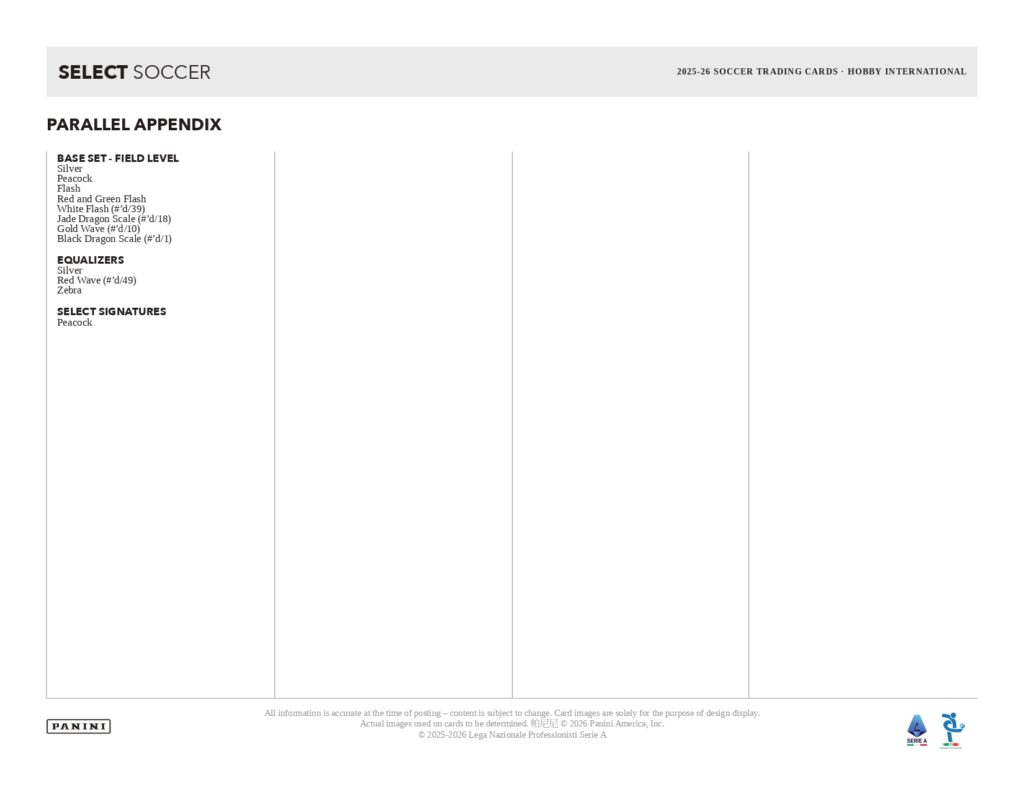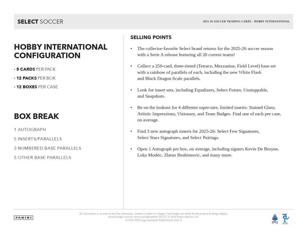 2025-26 PANINI SELECT SERIE A SOCCER HOBBY INTERNATIONAL