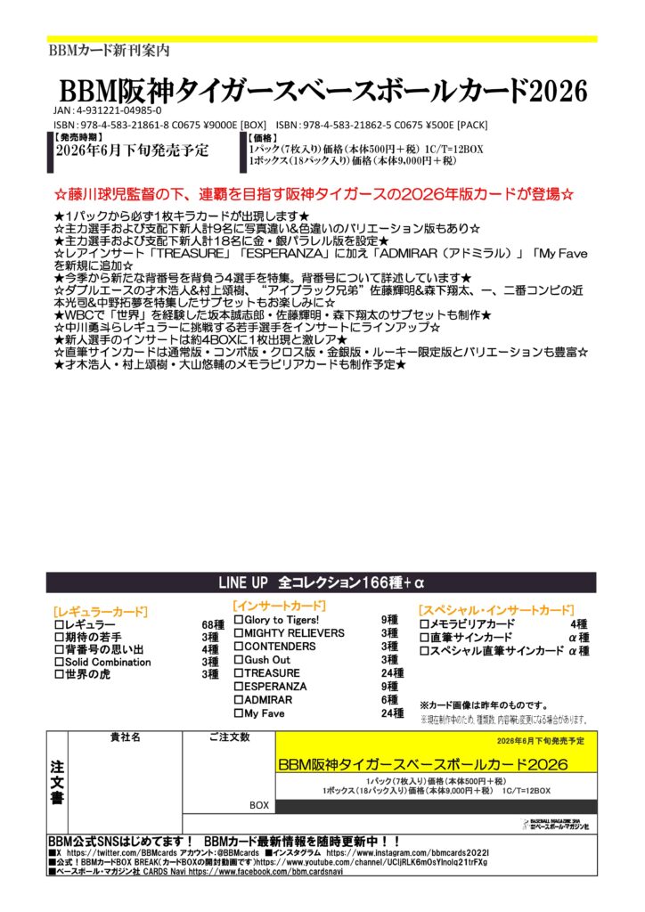 ☆藤川球児監督の下、連覇を目指す阪神タイガースの2026年版カードが登場☆