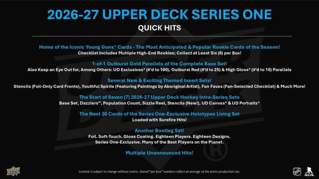 【製品情報】NHL 2026-27 UPPER DECK SERIES 1 HOBBY