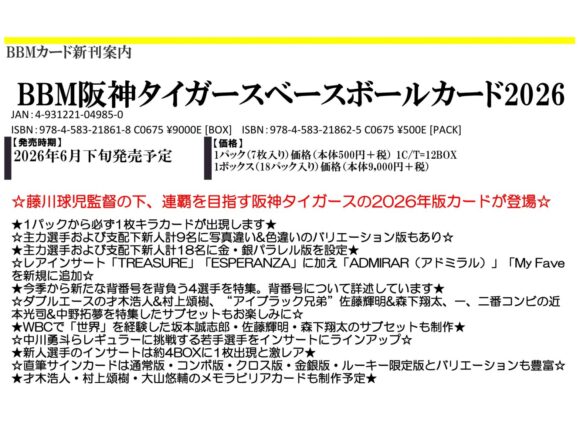 【製品情報】⚾ BBM 阪神タイガース ベースボールカード 2026