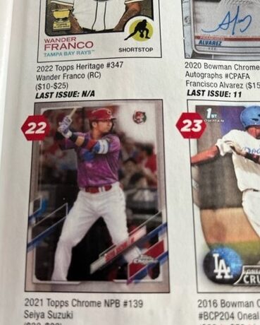 誠也のTOPPS「Chrome」が22位にランクイン! Beckett最新号「Hot List」に初登場!【ニューストピックス】