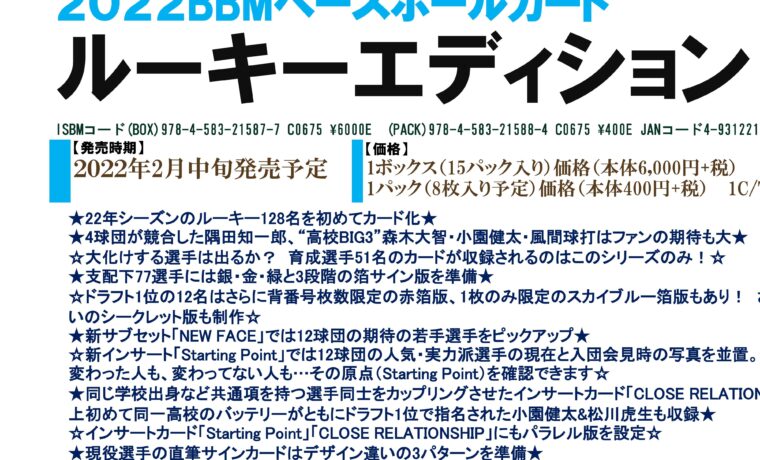 ⚾ 2022 BBM ベースボールカード ルーキーエディション【製品情報】